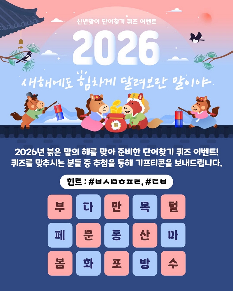 부산문화포털 다봄 2026년 신년맞이 단어찾기 퀴즈 이벤트♥