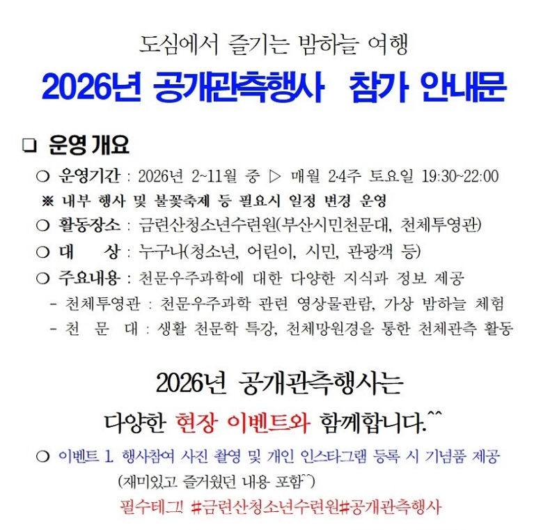 ○ 행 사 명 : 2026년 공개관측행사 안내
