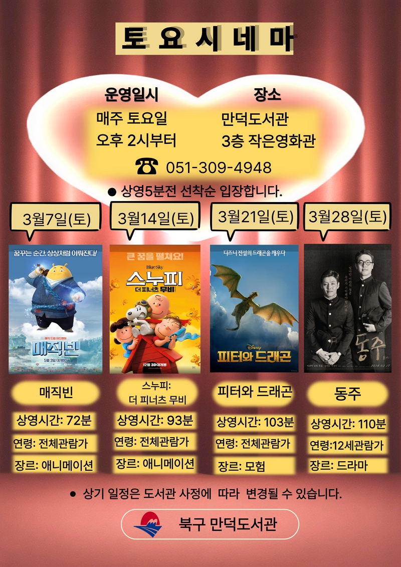 ○ 행 사 명 : 만덕도서관 2026년 <3월 28일 토요시네마> 안내